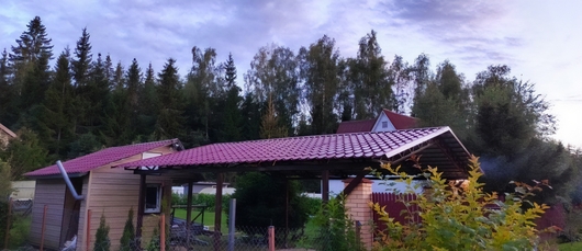 Навес из металлочерепицы двускатный для зоны отдыха Арт-652